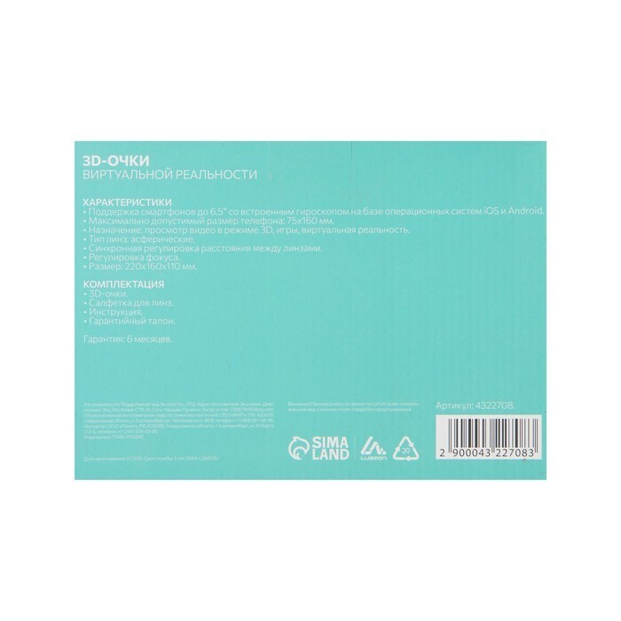 3D-очки LuazON - самое настоящее окно в волшебный мир виртуальной реальности. Принцип действия этой модели заключается в создании зрительного и акустического эффекта присутствия пользователя в локации, отображаемой на экране портативного устройства. Очки совместимы с любыми моделями смартфонов, чья диагональ экрана не более 6.5 дюймов. Удобные мягкие вставки в районе переносицы обеспечат комфортное погружение в волшебный 3D-мир по ту сторону экрана смартфона