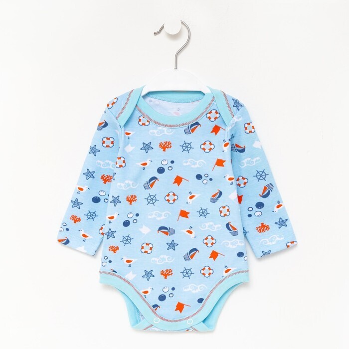 Боди детское «Полоска с якорем», цвет голубой, рост 80 см