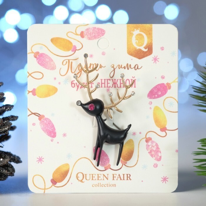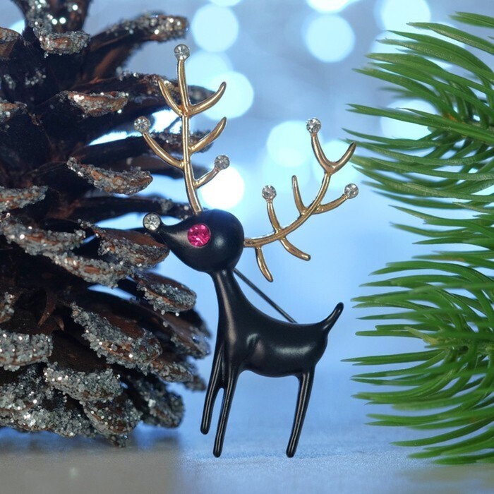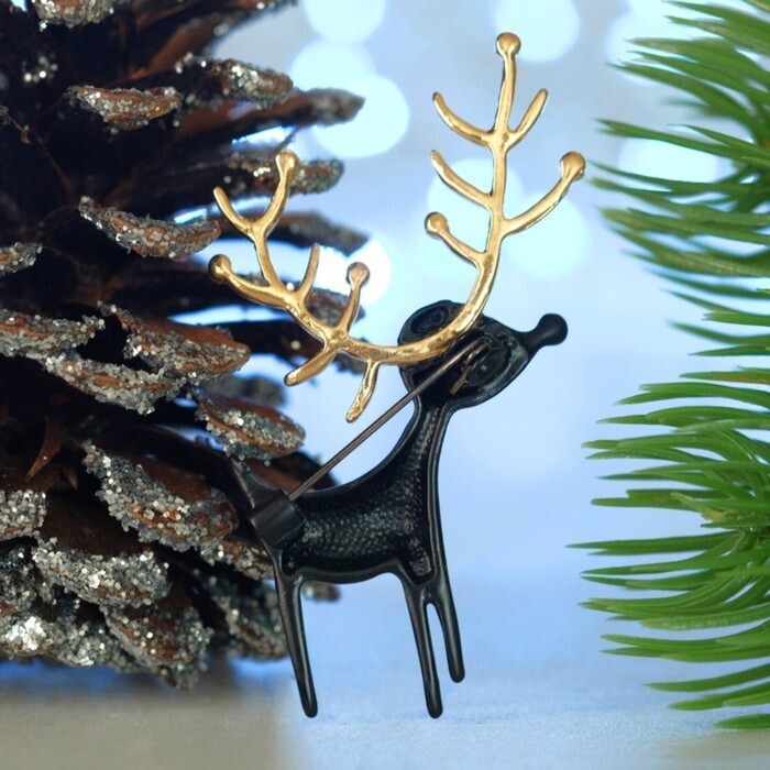 Брошь новогодняя "Олень" мультяшный, цвет чёрный в золоте