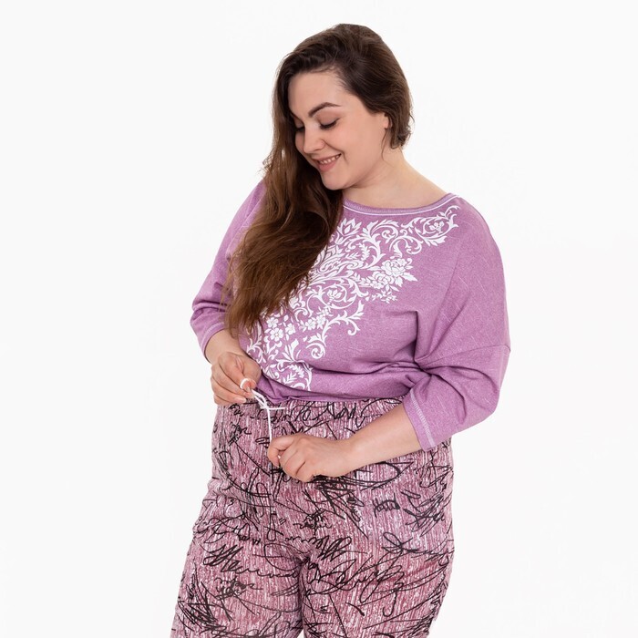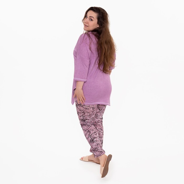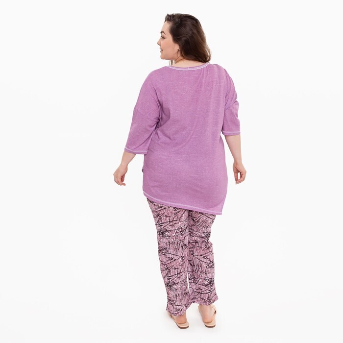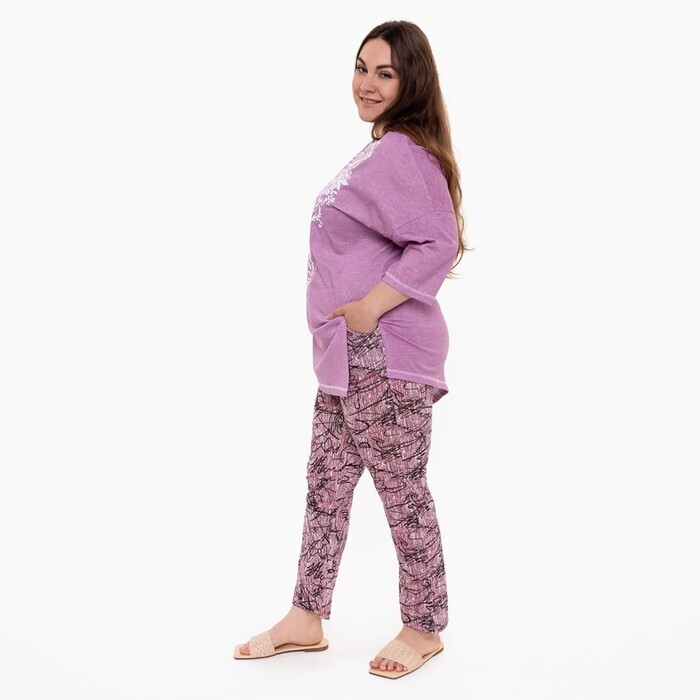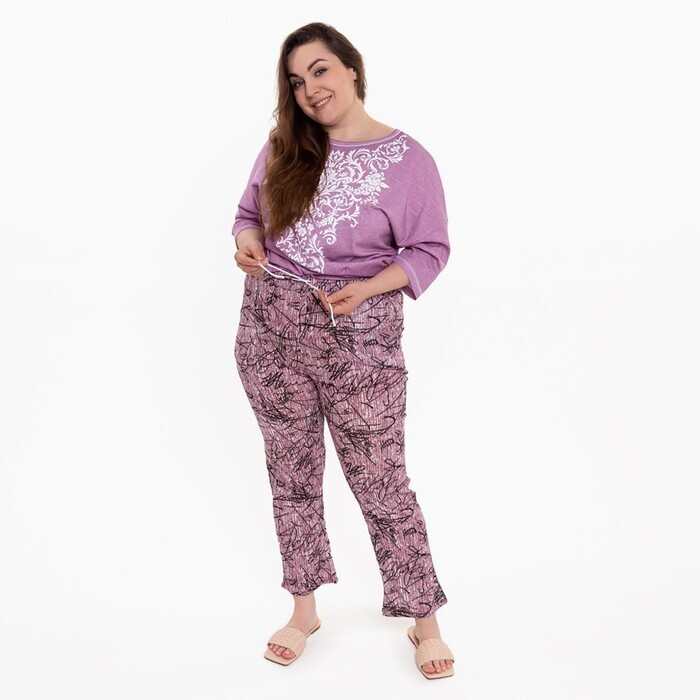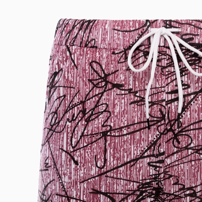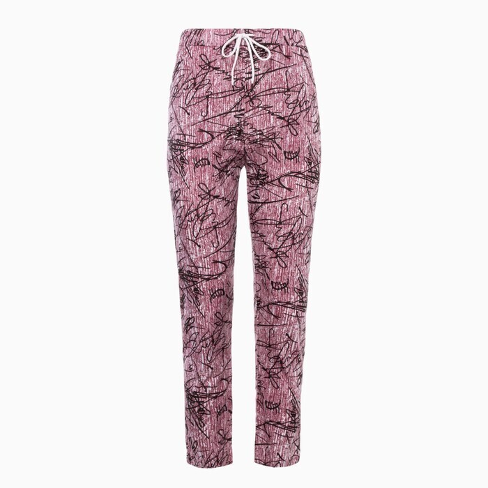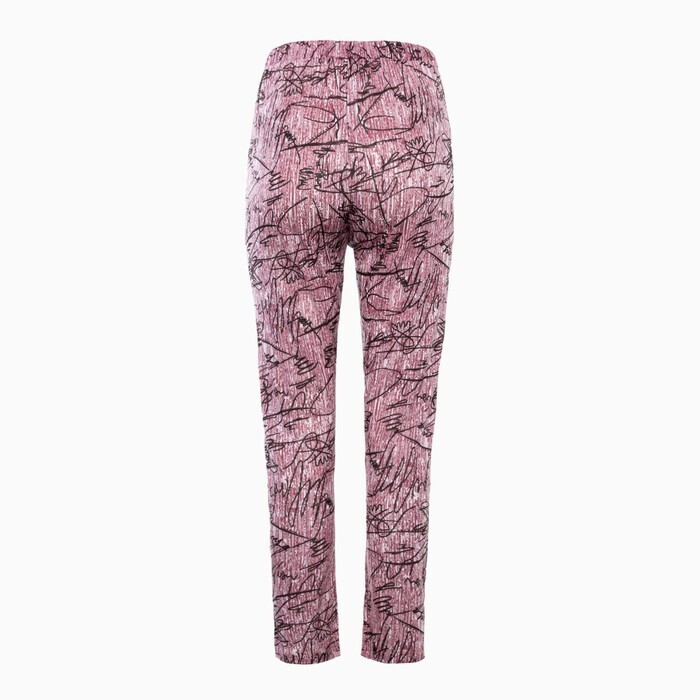 Брюки женские с принтом, цвет розовый с черн рисунком, размер 48