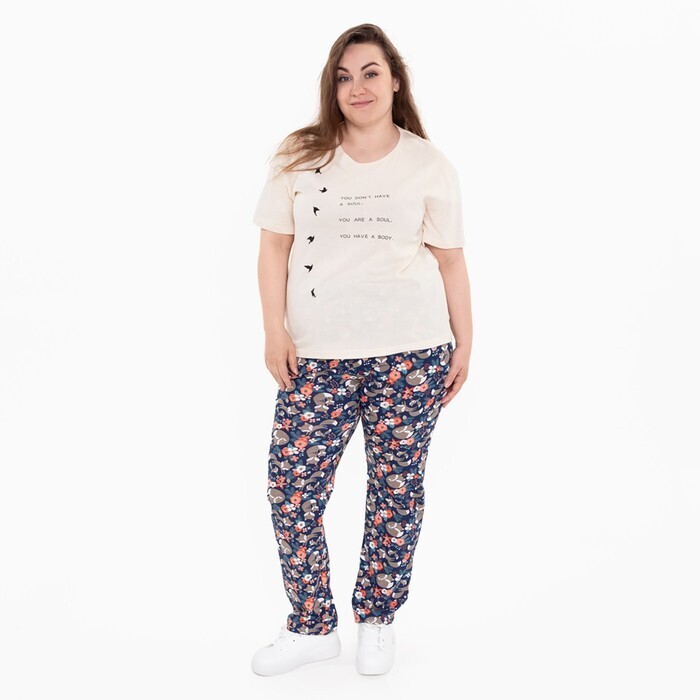 Брюки женские с принтом, цвет синий, размер 46