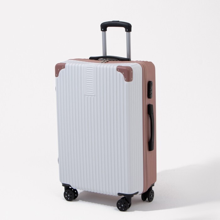 Чемодан большой 26", кодовый замок, цвет белый/розовый