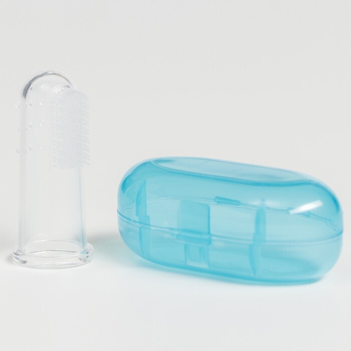 Детская зубная щетка, прорезыватель - массажер на палец, силиконовая, в контейнере, на палец от 3 мес.