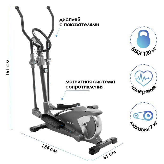 - показатели дисплея: время, скорость, дистанция, приблизительное количество калорий, частота пульса;