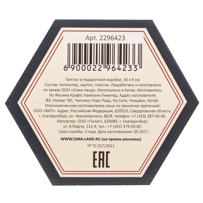 Длина галстука 150 см, ширина в самом узком месте 2 см, в самом широком – 7,5 см.