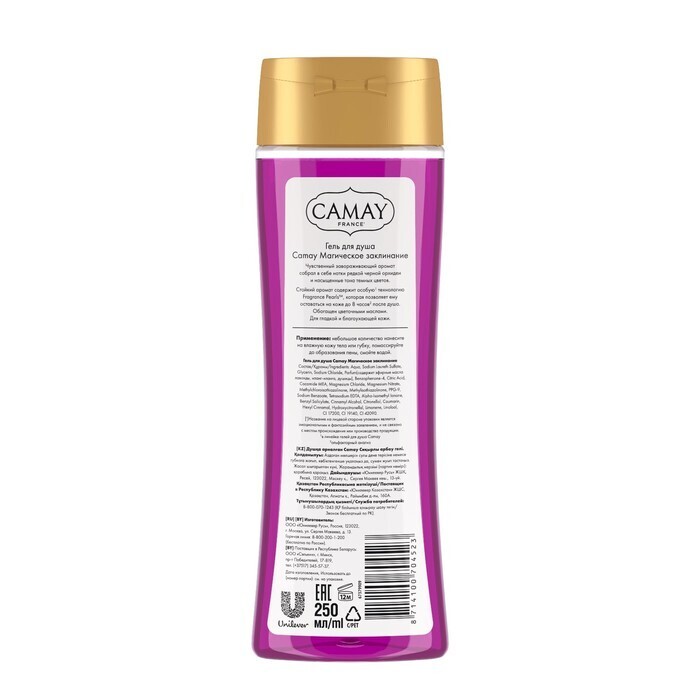 Этот чувственный, завораживающий аромат геля для душа Camay Магическое заклинание собрал в себе нотки редкой черной орхидеи и насыщенные тона темных цветов. Попробуйте настоящее произведение парфюмерного искусства.