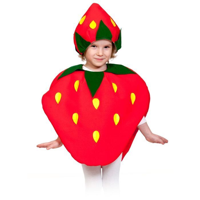 Карнавальный костюм "Клубничка", текстиль, шапочка, накидка, рост 98-128 см