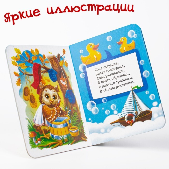 Книги содержит ритмичные стихи и красочные иллюстрации с крупными персонажами, которые помогут привить ребёнку любовь к чтению с раннего возраста.