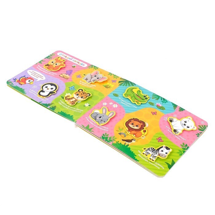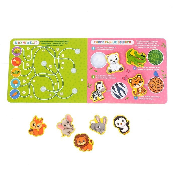 Ваш малыш обожает животных? Тогда эта яркая книга точно понравится крохе. Играя с липучками, ребёнок узнает, где обитают разные виды зверушек, и весело проведёт время.