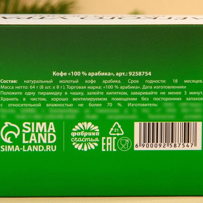 Состав: натуральный молотый кофе арабика.