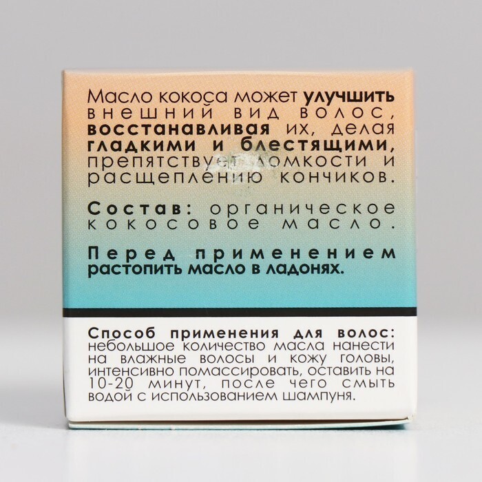 Характеристика: кокосовое масло нерафинированное - обладает защитными, смягчающими и разглаживающим свойствами, эффективно ухаживает как за волосами, так и за кожей. Натуральное кокосовое масло покрывает волос защитным слоем, препятствует повреждению волос при сушке, активно стимулирует рост и укрепляет волосы, восстанавливает поврежденные волосы.
