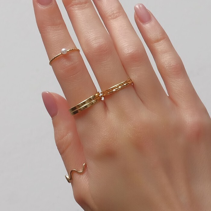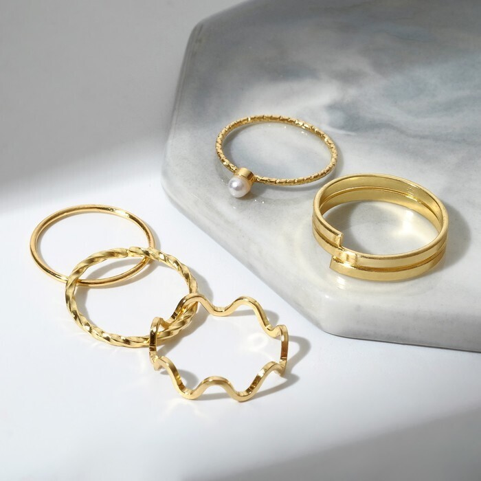 Кольцо набор 5 штук "Идеальные пальчики" плетение, цвет белый в золоте