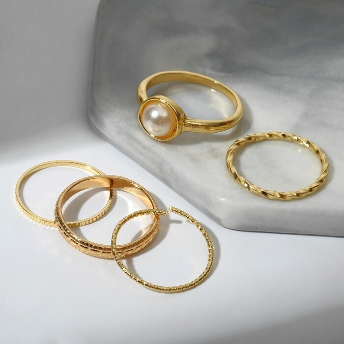 Кольцо набор 5 штук "Идеальные пальчики" венец, цвет белый в золоте