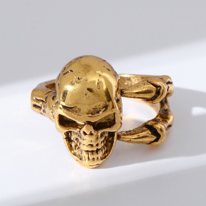 Кольцо "Перстень" череп, цвет чернёное золото, безразмерное