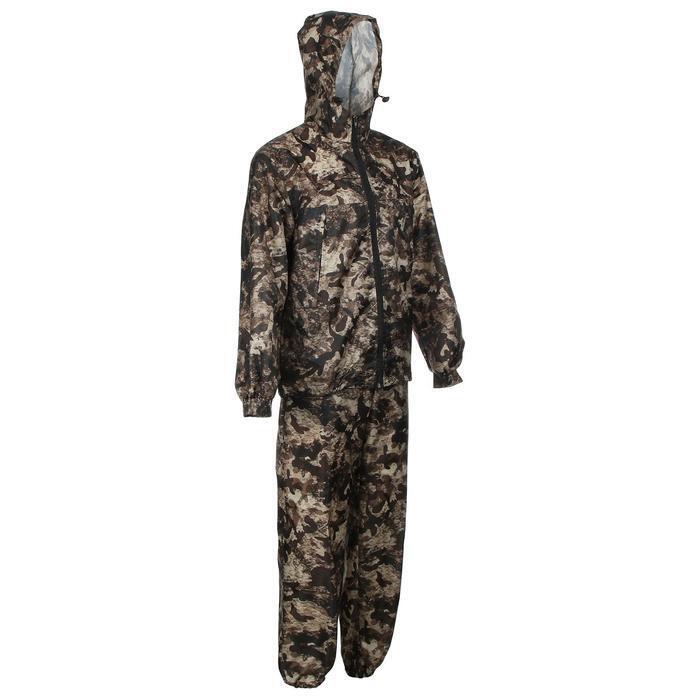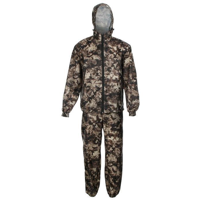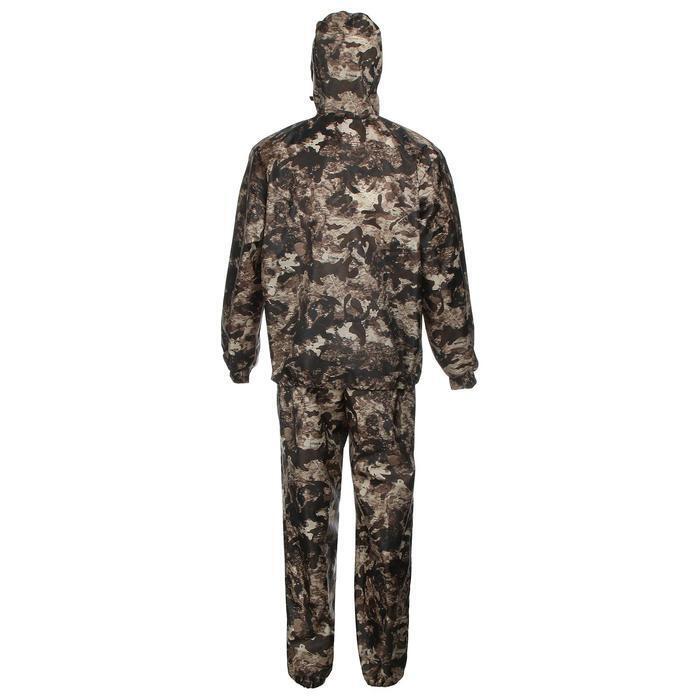 Костюм из ткани оксфорд состоит из куртки и брюк. Куртка с капюшоном, на молнии, карманы накладные на молнии. По низу регулировка шнуром. Брюки с поясом на резинке и ленинградскими карманами.
