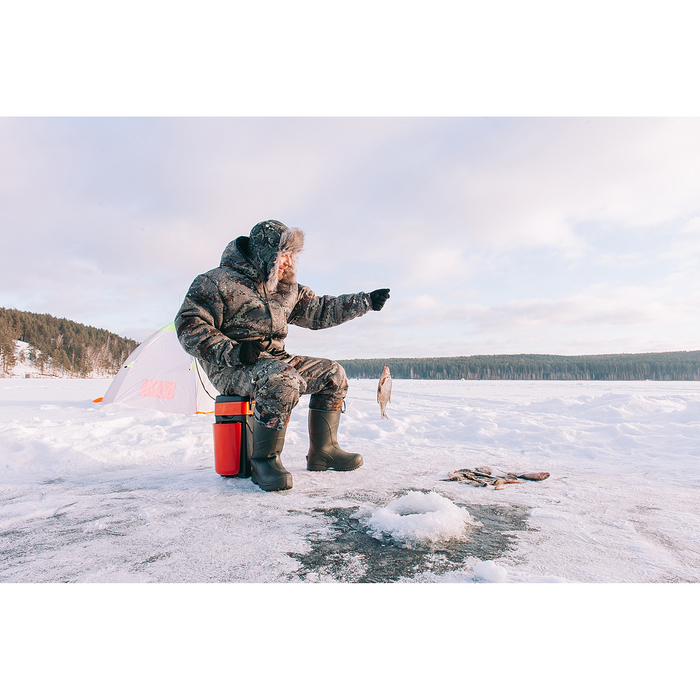 Зимний костюм «Эхо» рассчитан на температуру до ‒20 °С. Выполнен из мягкой нешуршащей смесовой ткани грета с водоотталкивающей пропиткой, способной выдержать небольшой моросящий дождь или снег.