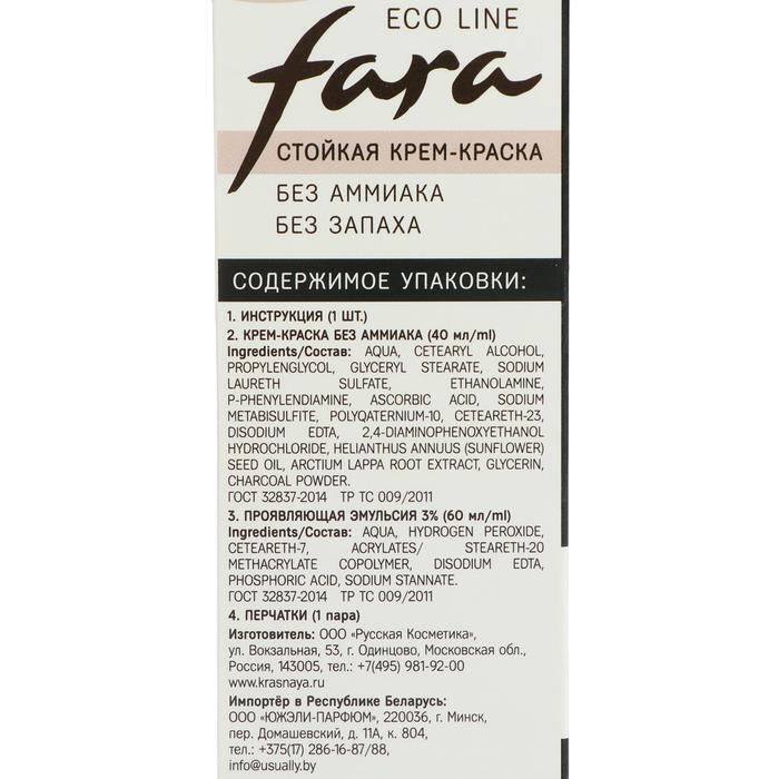 Fara Eco Line — стойкая крем-краска без аммиака и без запаха со 100% натуральным репейным маслом обеспечивает стойкий эффект окрашивания, яркий насыщенный цвет, щадящее воздействие и бережный уход за волосами от самой природы. Специально подобранный для оттенка 1.0 дополнительный активный компонент — натуральный уголь оказывает общеукрепляющее действие на состояние волос, придает здоровый и ухоженный вид.
