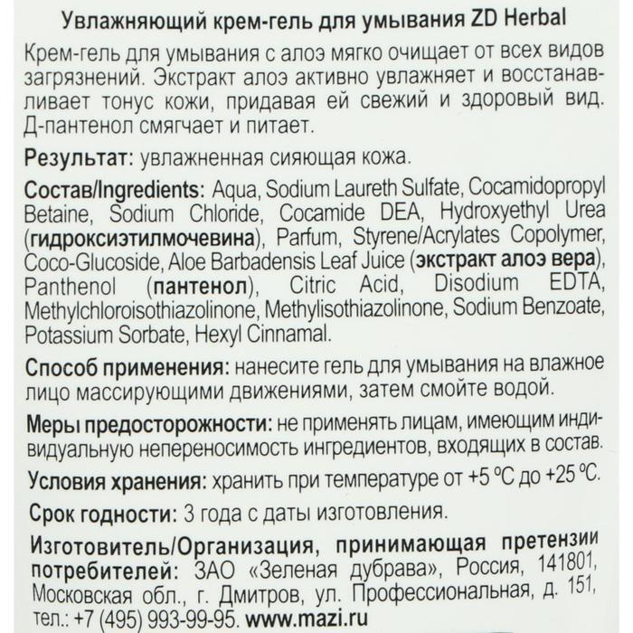 Крем гель для умывания ZD Herbal увлажняющий, 150 мл