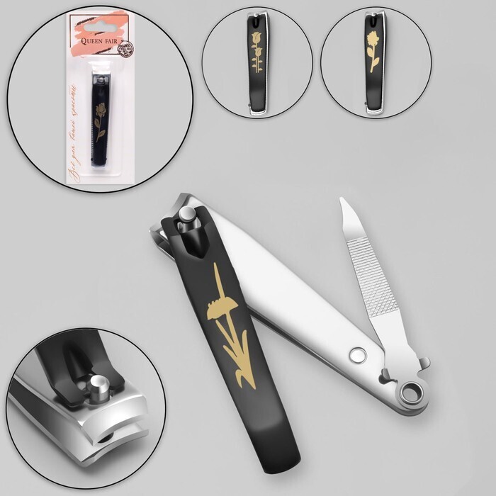 Кусачки-книпсер педикюрные, с пилкой, 8 см, на блистере, цвет чёрный