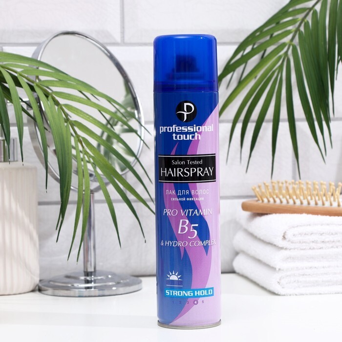 Лак для волос Pro vitamin B5 & Hydro Complex» сильная фиксация - широко известная, проверенная миллионами покупательниц марка профессионального ухода за волосами дома. Благодаря запатентованной формуле лак для волос Professional Touch и особому сочетанию полимеров, витаминов группы B и комплекса мультивитаминов лак обеспечивает ультра сильную фиксацию при любых погодных условиях при этом сохраняется динамичность укладки и естественный вид.