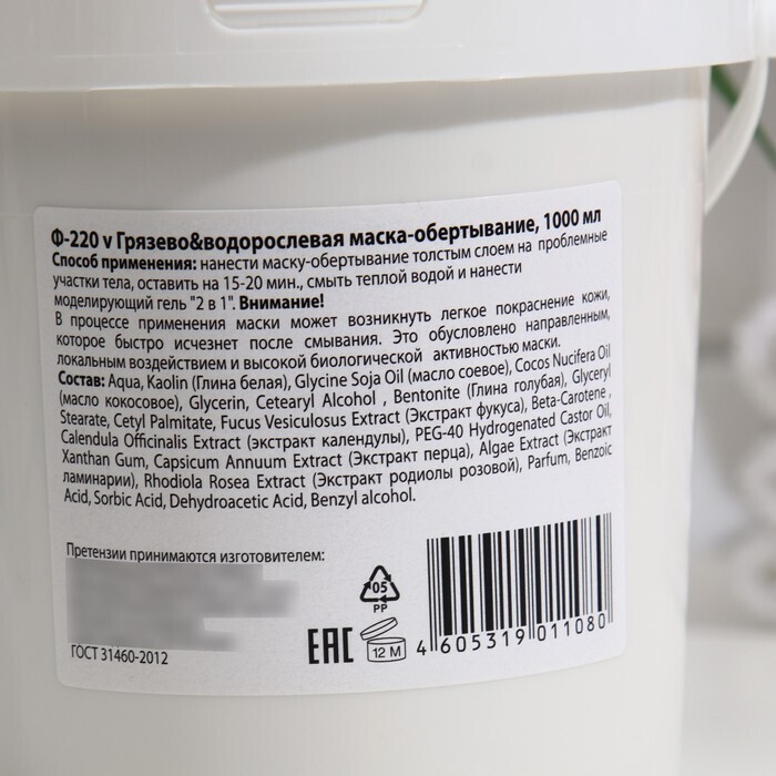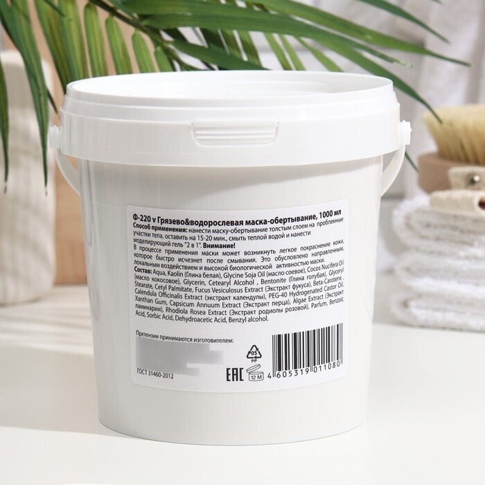 Способ применения: нанести маску-обертывание толстым слоем на проблемные участки тела, оставить на 15-20 минут, смыть тёплой водой.
