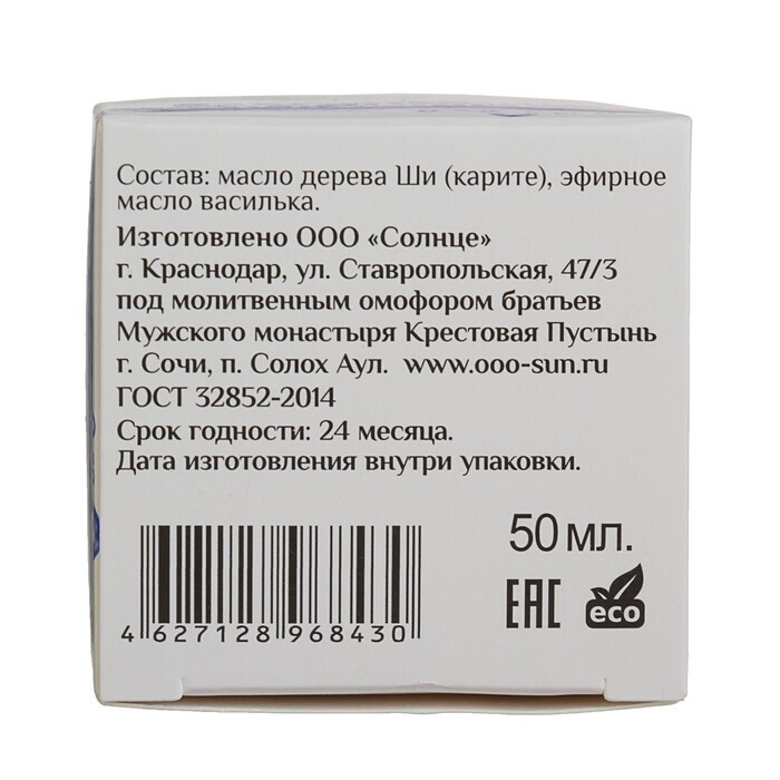 Состав: масло дерева Ши (карите), эфирное масло василька.