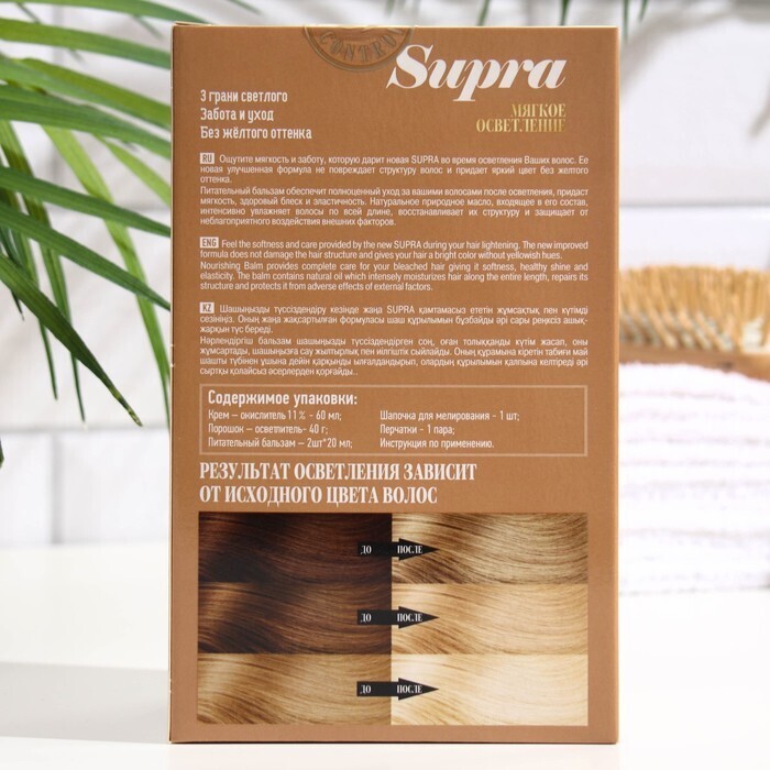 Ощутите мягкость и заботу, которую обеспечивает новая Supra во время осветления волос. Её новая улучшенная формула не повреждает структуру волос и придаёт яркий цвет без жёлтого оттенка.