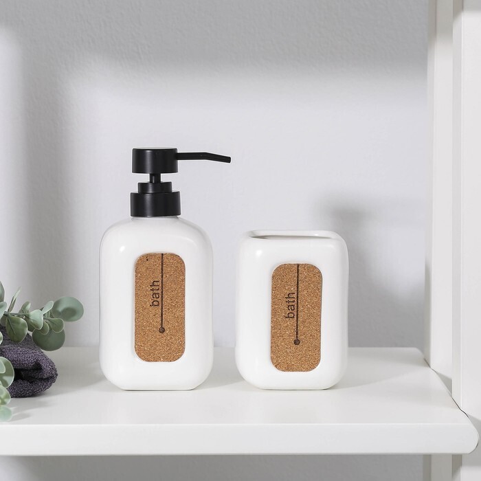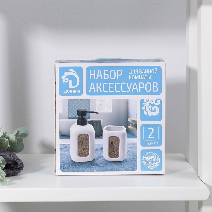 Набор аксессуаров для ванной комнаты Доляна «Лофт», 2 предмета (дозатор для мыла, стакан)