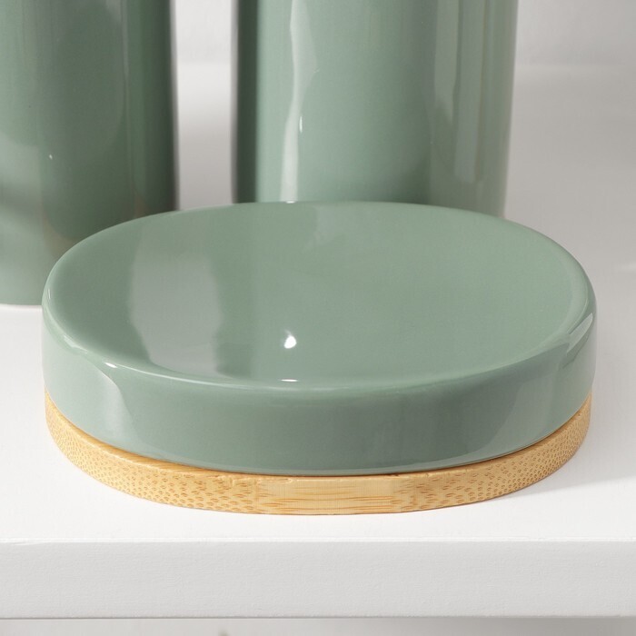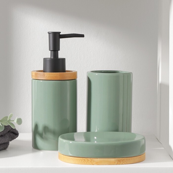 Набор аксессуаров для ванной комнаты SAVANNA «Джуно», 3 предмета (мыльница, дозатор для мыла, стакан), цвет зелёный