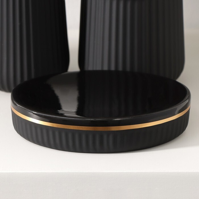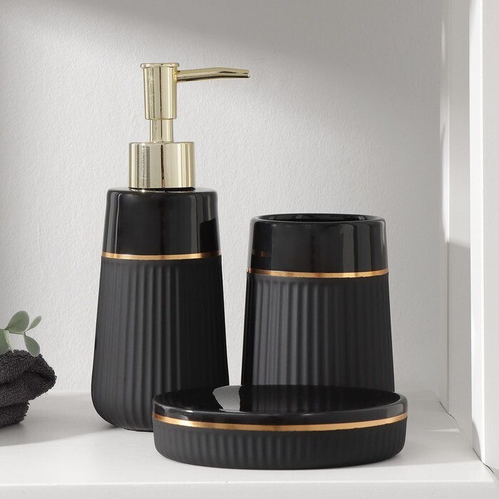 Набор аксессуаров для ванной комнаты SAVANNA Grace, 3 предмета (дозатор для мыла 290 мл, стакан, мыльница), цвет чёрный