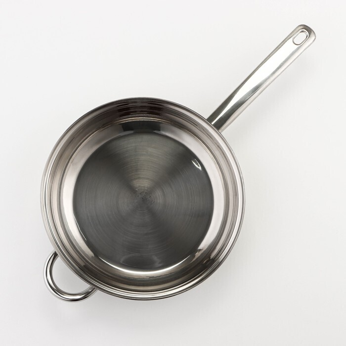 - В сковороде из нержавеющей стали лучше приготовятся ингредиенты, насыщенные водой: соус из помидоров, овощное рагу, жареные фрукты, филе сочной рыбы, например лосося. Такая сковорода идеально подойдёт для тушения.