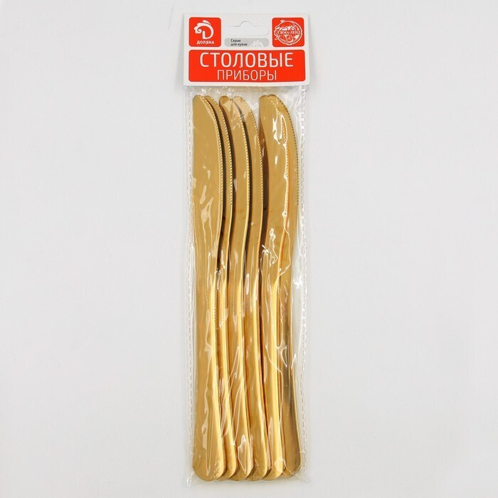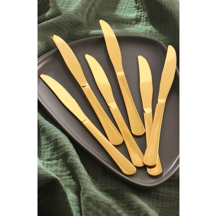 Набор ножей столовых Доляна «Голд», 23,5×2 см, 6 шт, цвет золотой