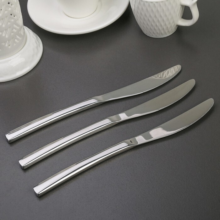 Набор ножей столовых Доляна «Майя», h=23 см, 3 шт, цвет серебряный