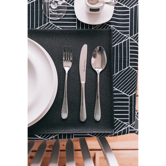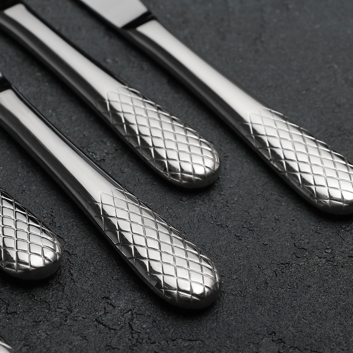 Изделия изготовлены из высококачественной нержавеющей стали. Отменное качество полировки позволяет приборам сохранять свою презентабельность, выдерживать интенсивное использование и частое мытье в посудомоечной машине. Благодаря продуманной эргономичной форме изделия удобно ложатся в руку. Полностью безопасны в применении, не подвержены коррозии и деформации.