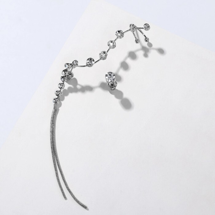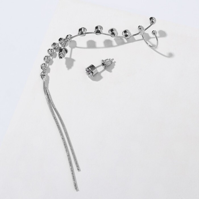 Набор серьги и каффа длинная ветвь, цвет белый в серебре