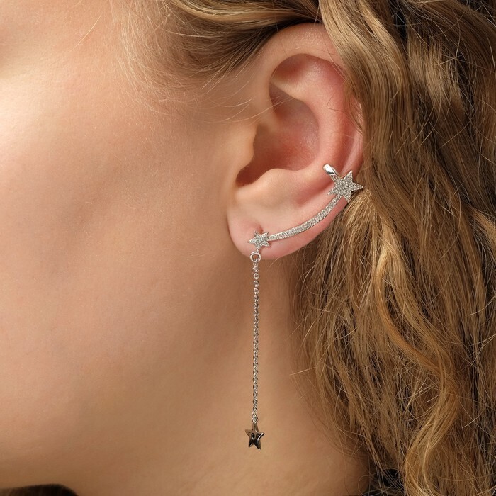 Набор серьги и каффа звезда ночная, цвет белый в серебре