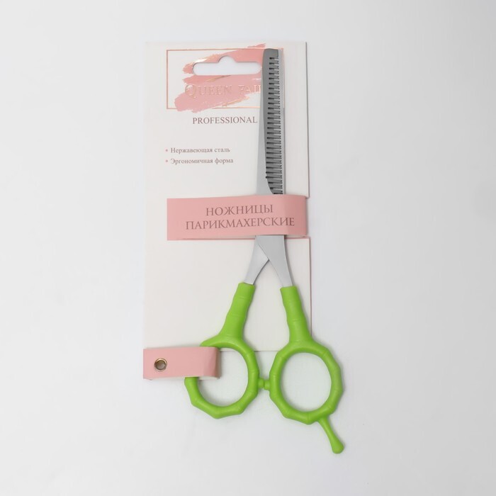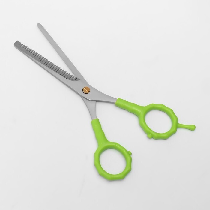 Ножницы филировочные с упором, лезвие 7 см, цвет салатовый/серебристый