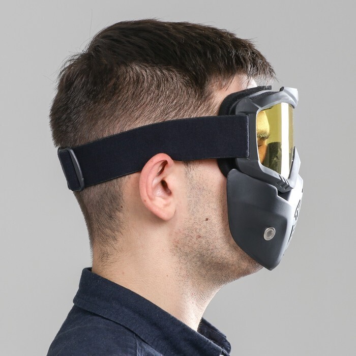 Очки-маска для езды на мототехнике, разборные, стекло желтое, цвет черный