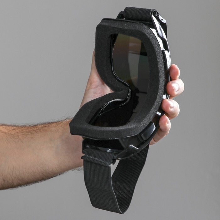 Регулируемый ремешок позволяет использовать очки как самостоятельно, так и с большинством видов мотошлемов