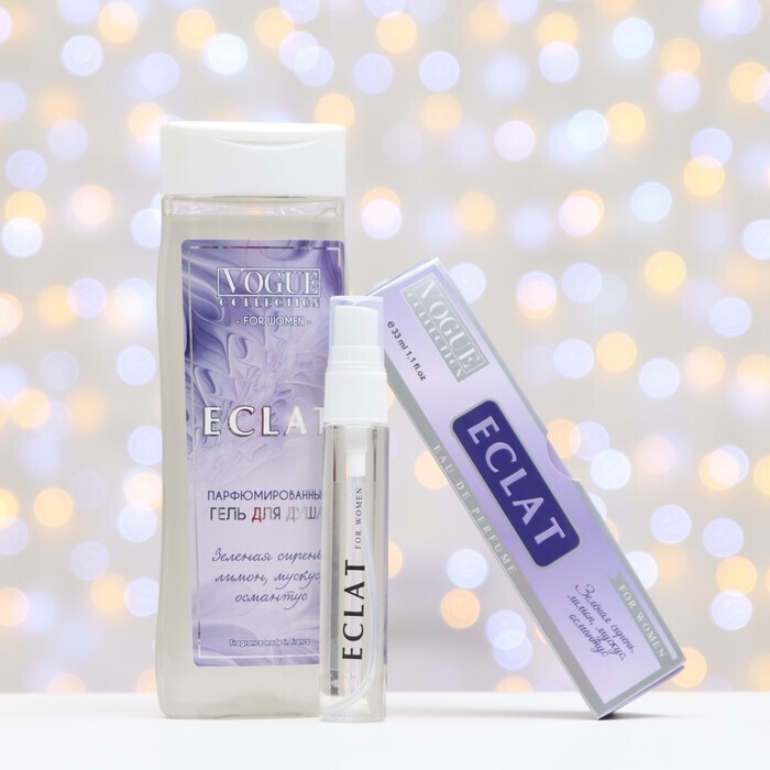 В женский подарочный набор входят парфюмированный гель для душа и парфюмированная вода. Фруктово-цветочная композиция- шедевр парфюмерного искусства. Eclat никого не способен оставить равнодушным. Аромат сочетает в себе самые нежные и мелодичные акценты сирени, сицилийского лимона и ноты мускуса.