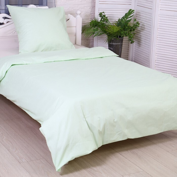 Постельное бельё 1.5сп Зигзаг зелёный (пододеяльник 145х215см, наволочка 70х70см) бязь, 120г/м², 100% хлопок