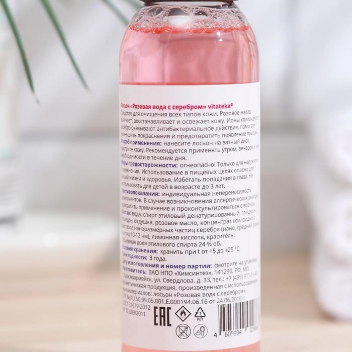 Состав: вода, глицерин, отдушка, лимонная кислота, красители, коллоидное серебро, розовое масло, денатурированный спирт, полидон.