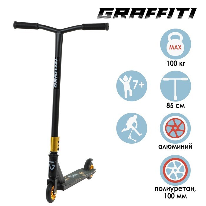 Самокат трюковый GRAFFITI, колёса PU/алюминий 100 мм, ABEC 9, жёсткость 85А