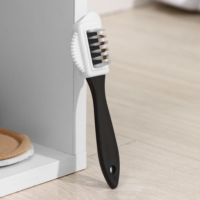 Щётка для обуви тройная: замша, нубук, велюр, 15×4 см, цвет чёрный
