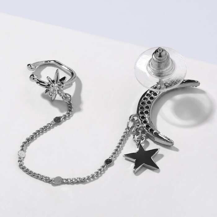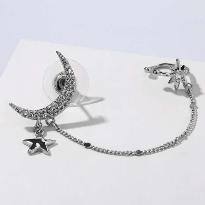 Серьга "Каффа" месяц на цепочке, цвет белый в серебре