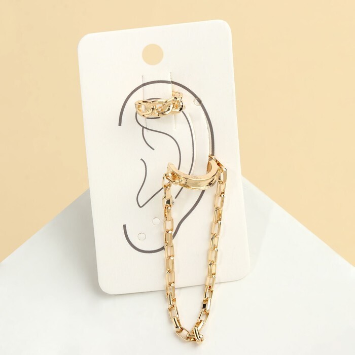 Серьги "Каффы" кручёное с цепочкой, набор 2 шт, цвет золото