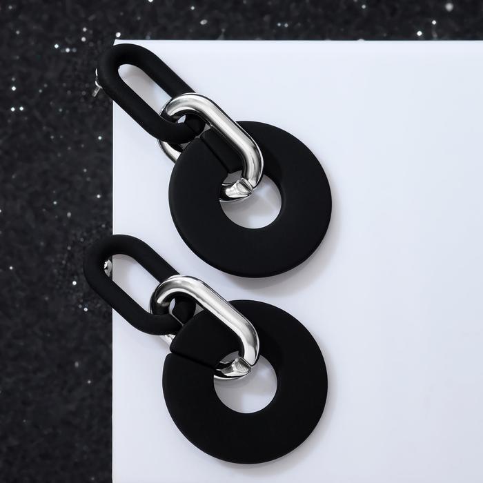 Серьги металл "Цепь" кольца, 3 звена, цвет серебристо-чёрный