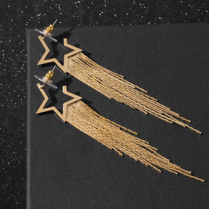 Серьги висячие "Дождь" звёзда, цвет золото