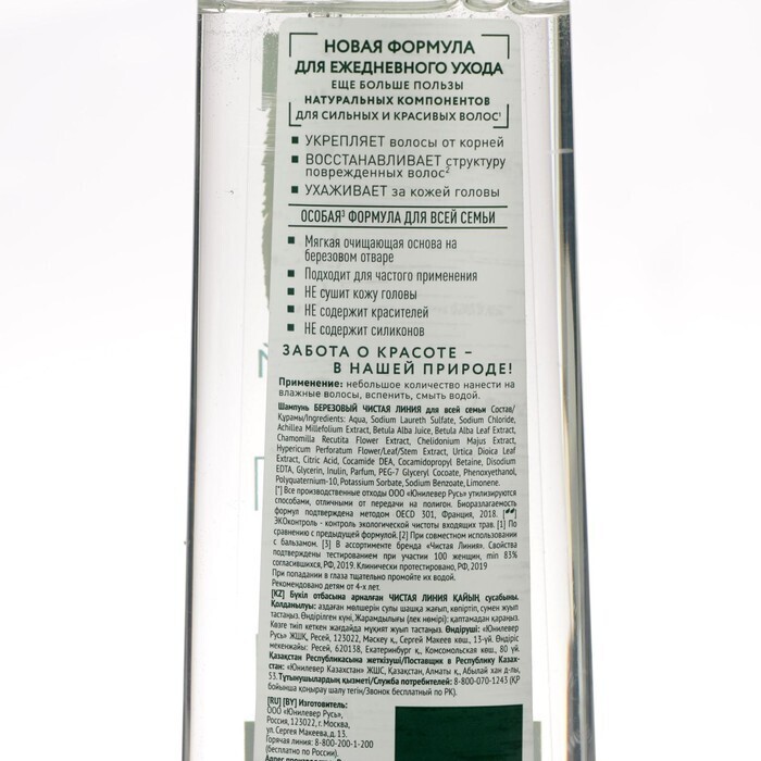 В его состав входит мягкая основа на берёзовом отваре без красителей, которая не сушит кожу и делает волосы крепкими и мягкими, оздоравливая кожу головы.