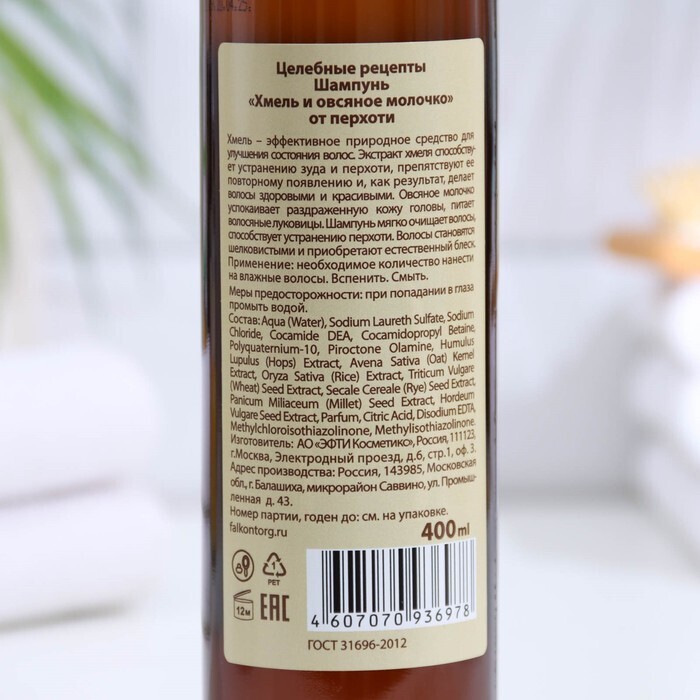 Шампунь для волос от перхоти Целебные рецепты "Хмель и овсяное молочко" превосходно очищает волосы , помогает нормализовать работу сальных желез, устраняет имеющиеся воспаления. Шампунь от перхоти для окрашенных волос. Увлажняющий, оказывает антибактериальное действие, не пересушивая волосы и кожу. Комплекс растительных масел оказывает выраженное укрепляющее воздействие придаёт потерянную эластичность, блеск. Помогает вернуть объем склонным к жирности корням и придает мягкость при расчесывании. Подойдет для жирных волос склонных к быстрым загрязнениям. Для кожи с воспалениями, и разрежениями. Можно использовать как мужской шампунь для роста волос, прекрасно подходит для ухода за бородой, для профилактики воспалений на коже. Подходит для мытья кудрявых, обесцвеченных и поврежденных волос. А также против выпадения волос.